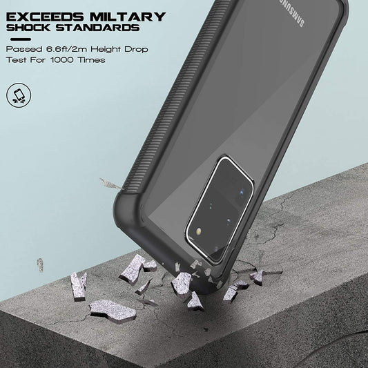Galaxy S20+ Plus Heavy Duty Protection Shockproof Slim Case, Without Built-in-Clear/Black
